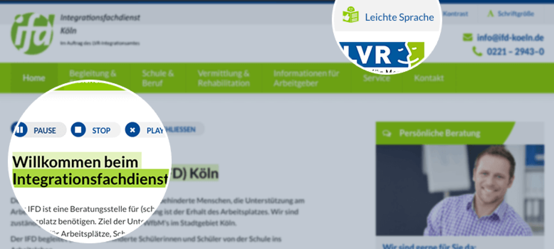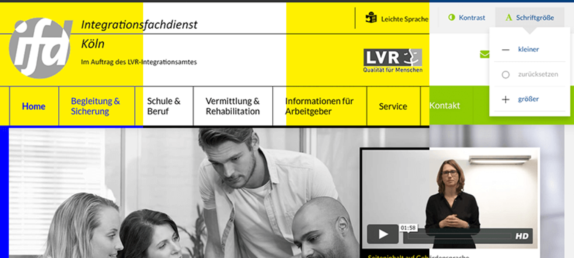 Im Zuge des Re-Launches des Internetauftritts für den Integrationsfachdienst Köln haben wir einige Funktionen und Erweiterungen in das Content Management System (CMS) webEdition integriert, welche die Bedienung für behinderte Menschen vereinfachen.