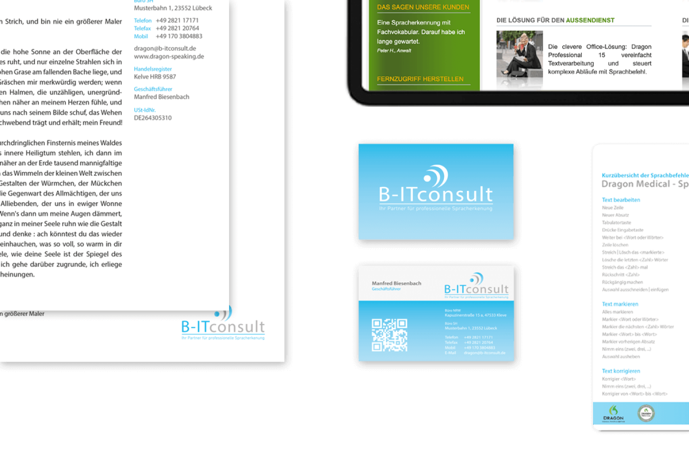Die B-ITconsult GmbH hat sich auf die Implementierung der Spracherkennung Dragon NaturallySpeaking spezialisiert und betreut insbesondere Anwalts- und Notarkanzleien und Einrichtungen im Gesundheitswesen bei der Einführung der Software.