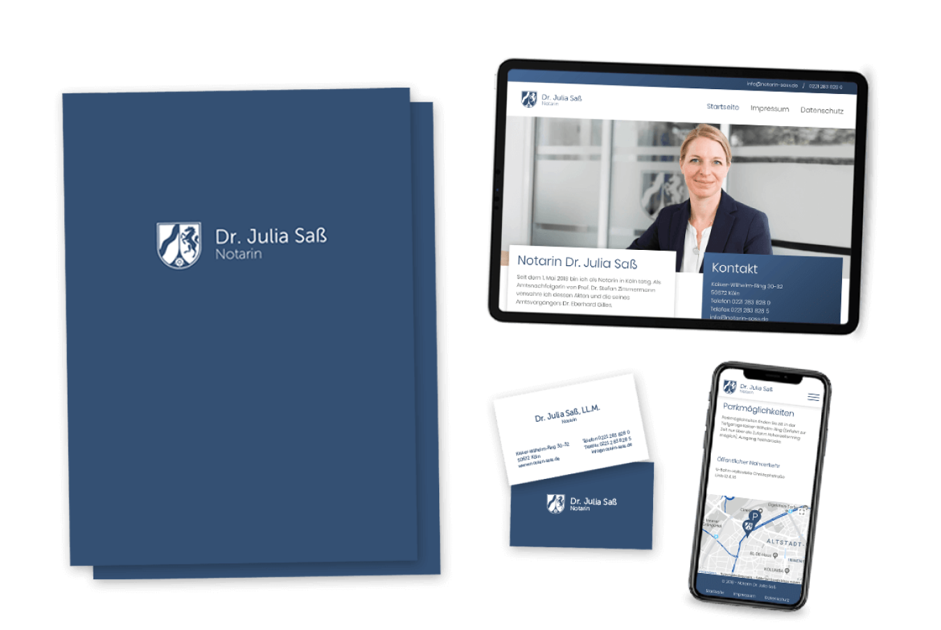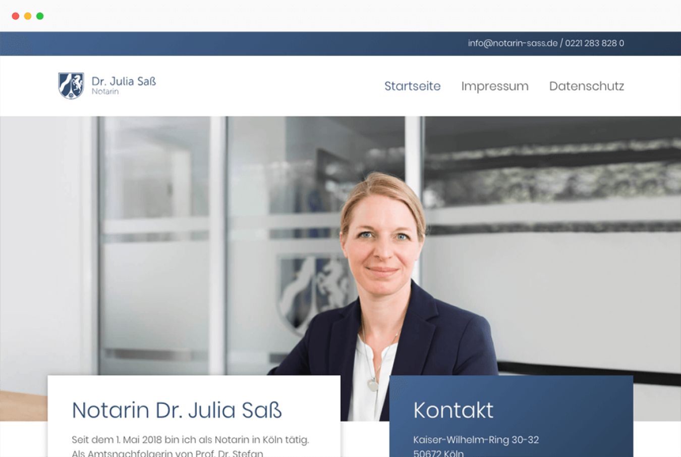 Wir haben für Frau Dr. Julia Saß ein komplett neues Corporate Design und – passend zu ihrer neutralen Tätigkeit – einen bewusst schlichten One-Pager entwickelt.