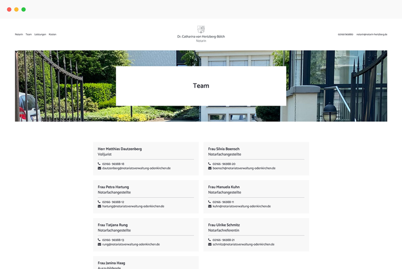 Notarin Dr. Catharina von Hertzberg-Bölch und ihr Team beraten in Mönchengladbach-Odenkirchen Klienten in allen notariellen Fragen.