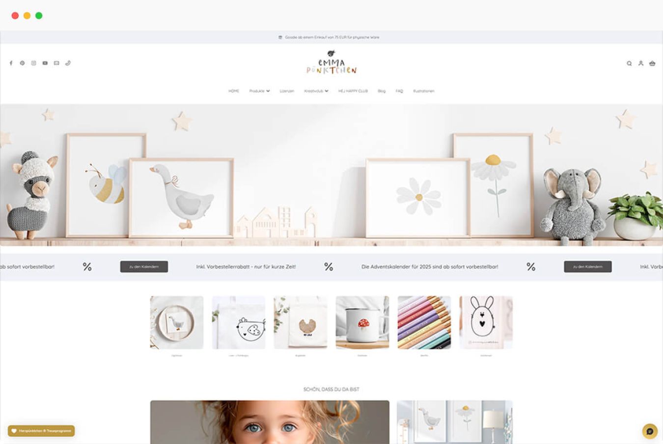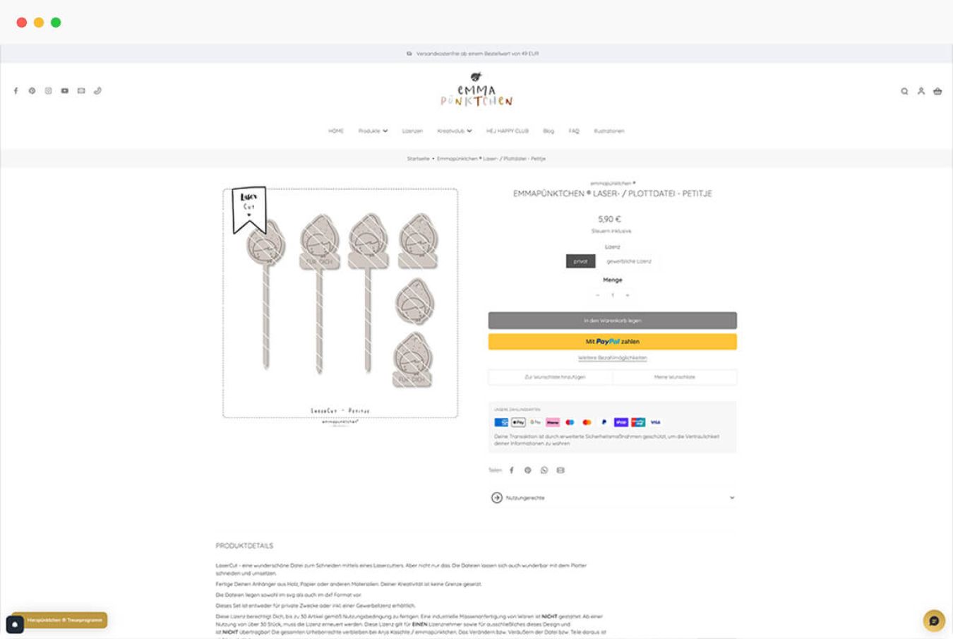 Mit handgezeichneten Illustrationen, Dateien zum Plotten, Lasern und Drucken sowie liebevoll gestalteten Holzstempel und Bügelbildern begeistert emmapünktchen kreative Eltern und deren Nachwuchs. Eine Clubmitgliedschaft im Abo bietet jeden Monat Freebies, DYI-Ideen und mehr.