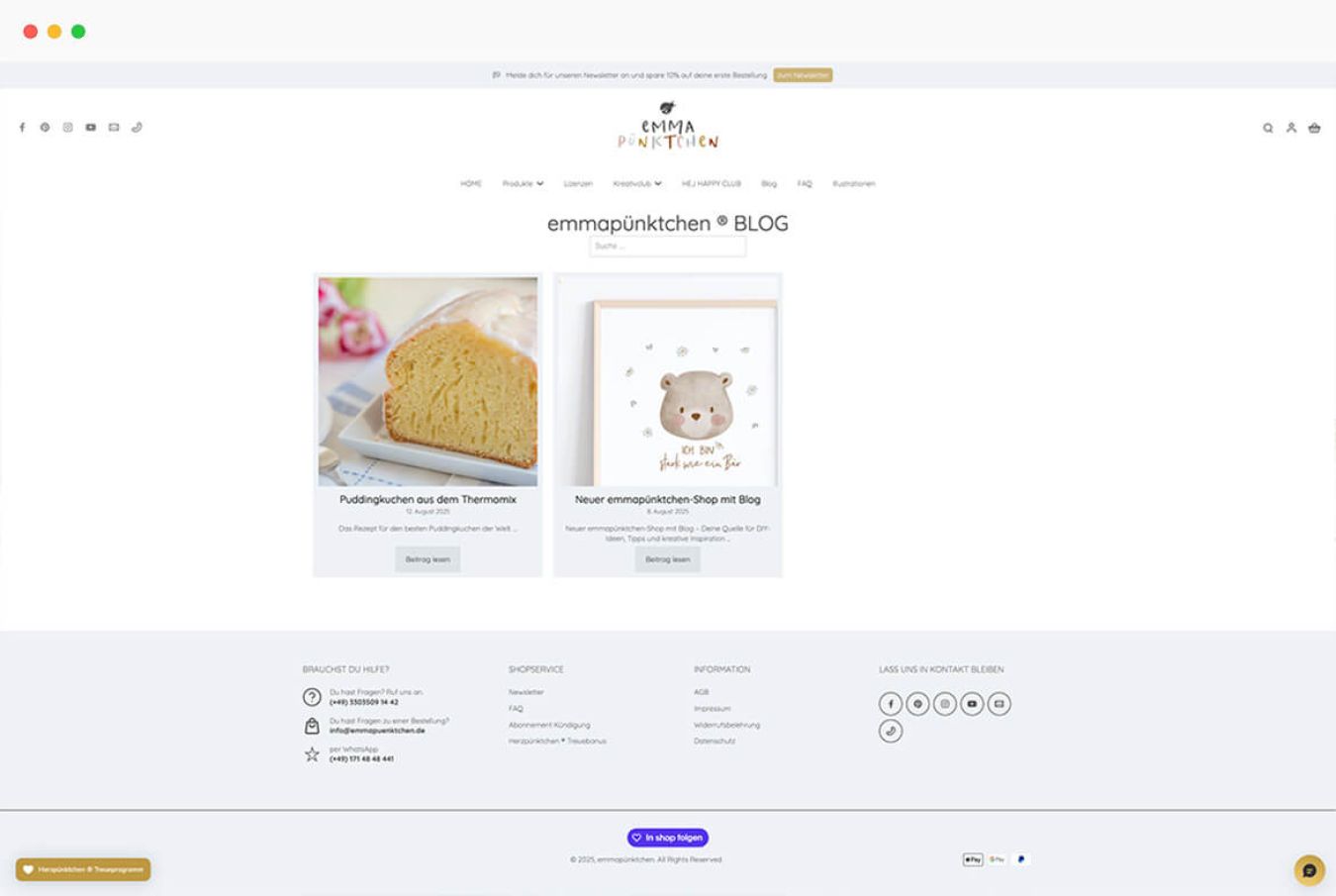 Wir haben den Onlineshop bereits 2018 von WooCommerce auf Shopware 5 umgezogen. Nun erfolgte die Migration von Shopware 5 zu Shopify. Dabei haben wir unsere langjährige Kundin bei der Auswahl der benötigten Erweiterungen beraten, den Shop eingerichtet und konfiguriert.