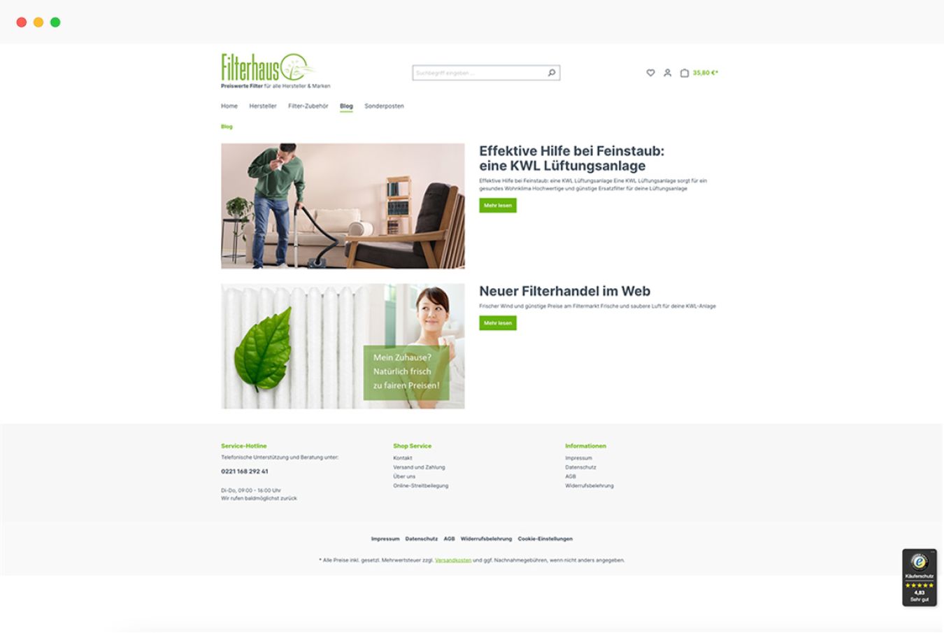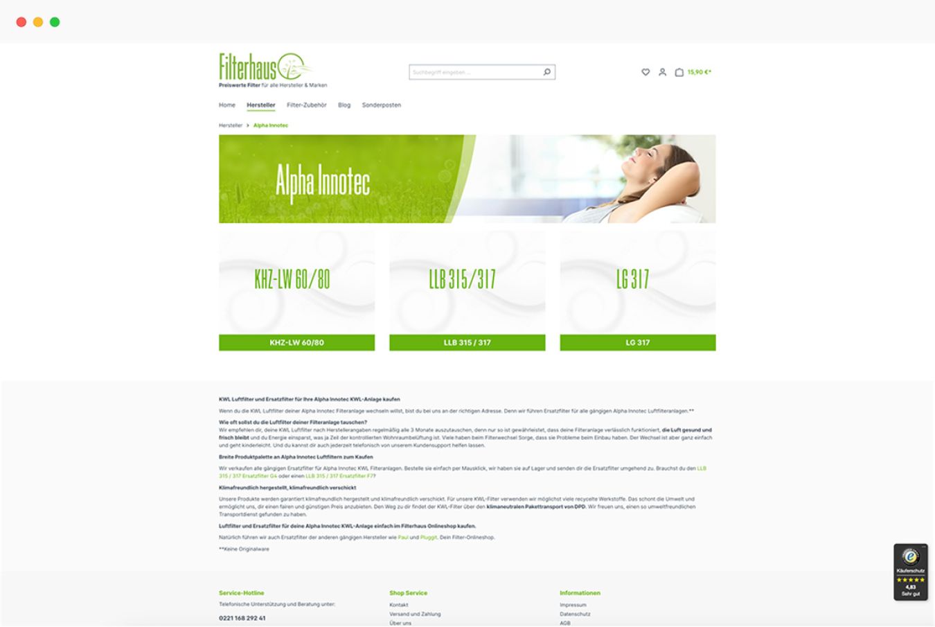 Das Konzept geht auf. Filterhaus konnte seine Umsätze kontinuierlich steigern und hat sein Lager erweitert. Im Zuge dieser Entwicklung waren Anpassungen im Onlineshop erforderlich. Wir haben die Onlineplattform von Shopware 5 auf Shopware 6 umgezogen, damit sie sich auch in Zukunft erfolgreich am Markt behauptet. Um den komplexeren Anforderungen des neuen Onlineshops gerecht zu werden und Abläufe noch effizienter zu gestalten, setzt Filterhaus mit dem Relaunch auf Pickware ERP Pro. Es erweitert das Angebot für Shopware 6 um zusätzliche Funktionen. Von besonderer Bedeutung ist dabei das integrierte Retourenmanagement, mit dem Retouren direkt in der Shopware-Administration erstellt werden können. Weiterer Vorteil: die Anbindung an DATEV. Sie ermöglicht es, Prozesse in der Buchhaltung weiter zu automatisieren und zu vereinfachen.