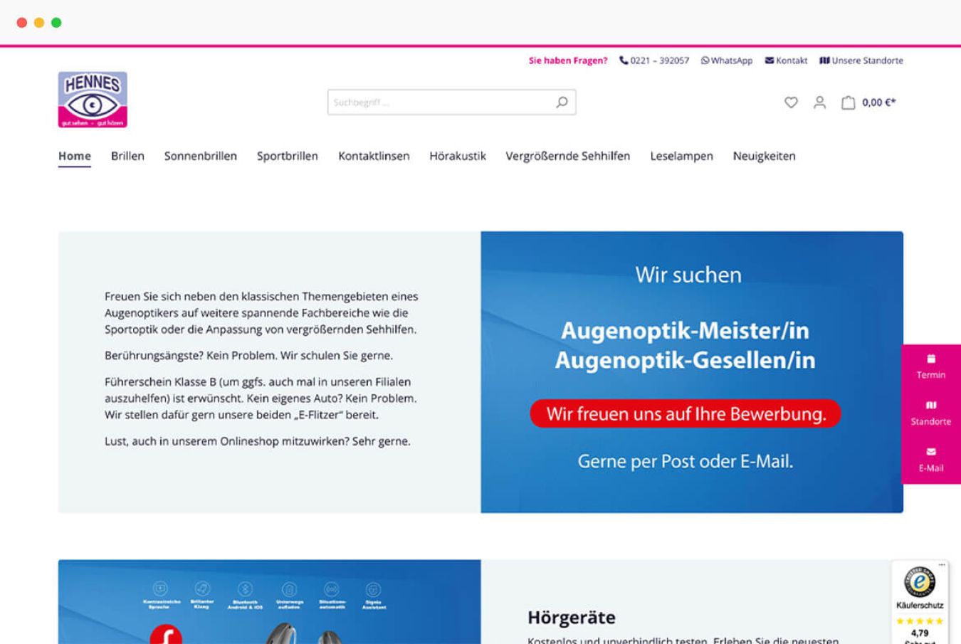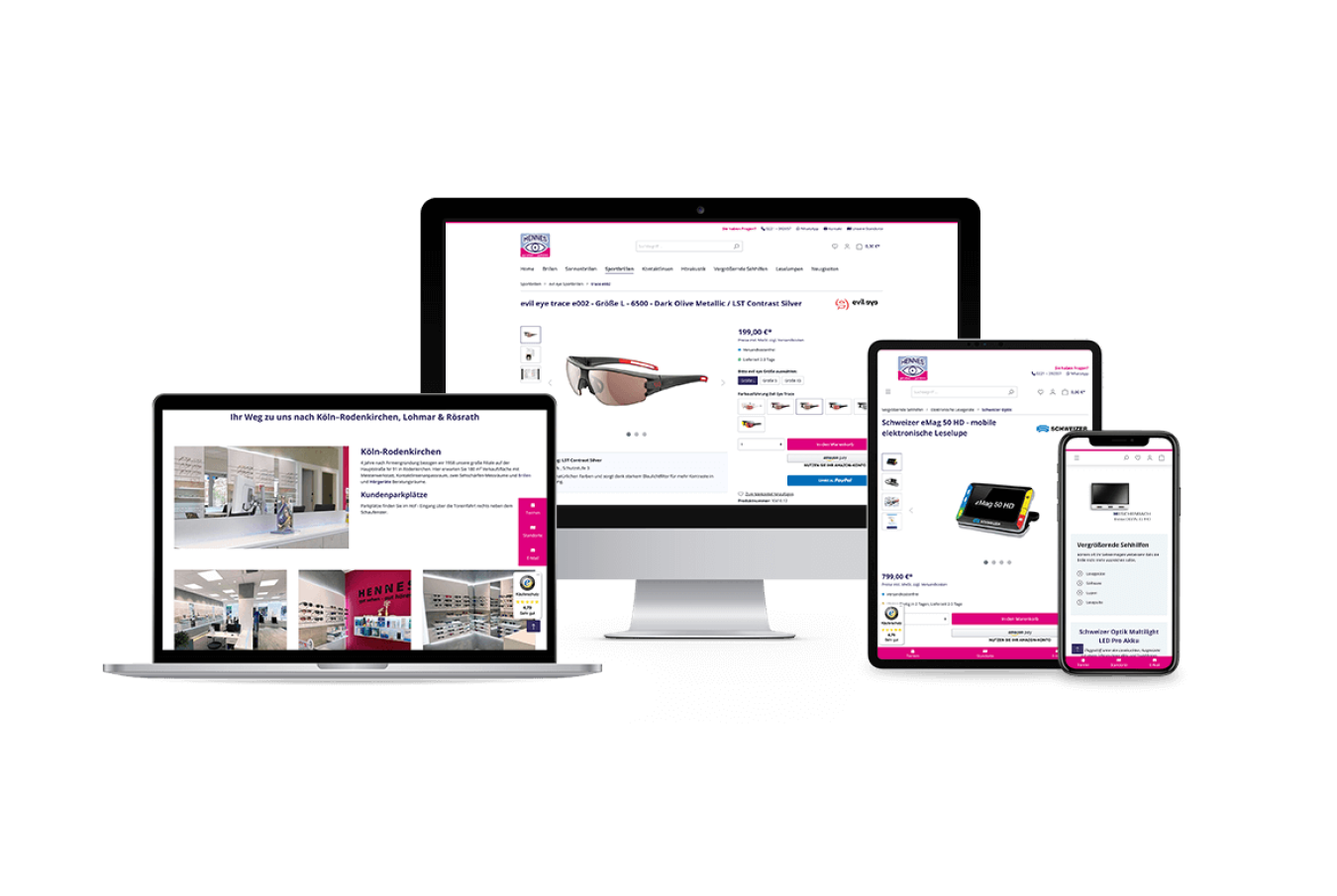 Im Hennes Onlineshop kann man Brillen, Kontaktlinsen, Sportbrillen, Hörgeräte & mehr bestellen.