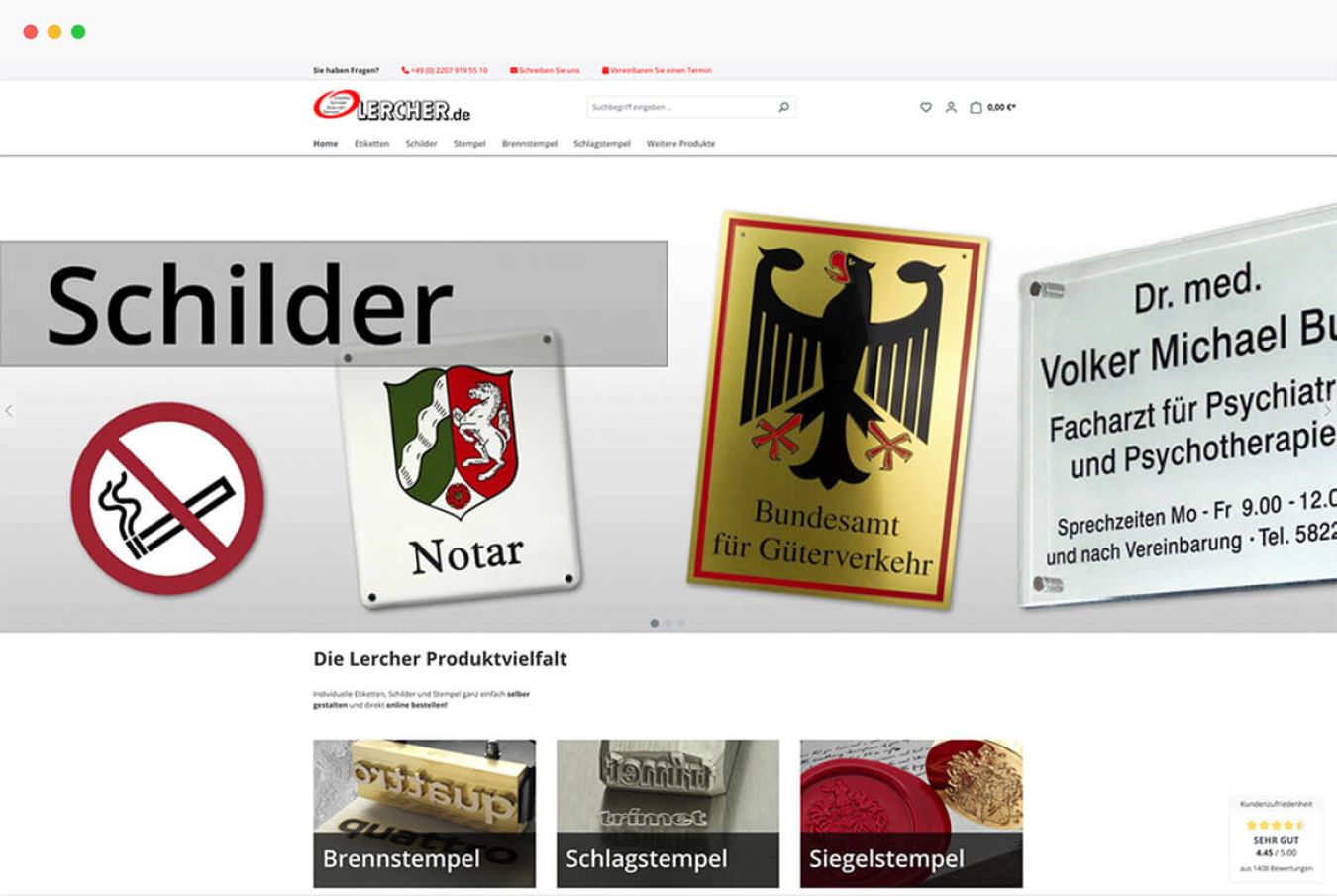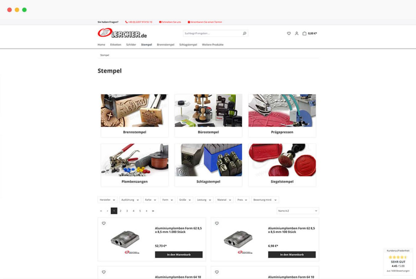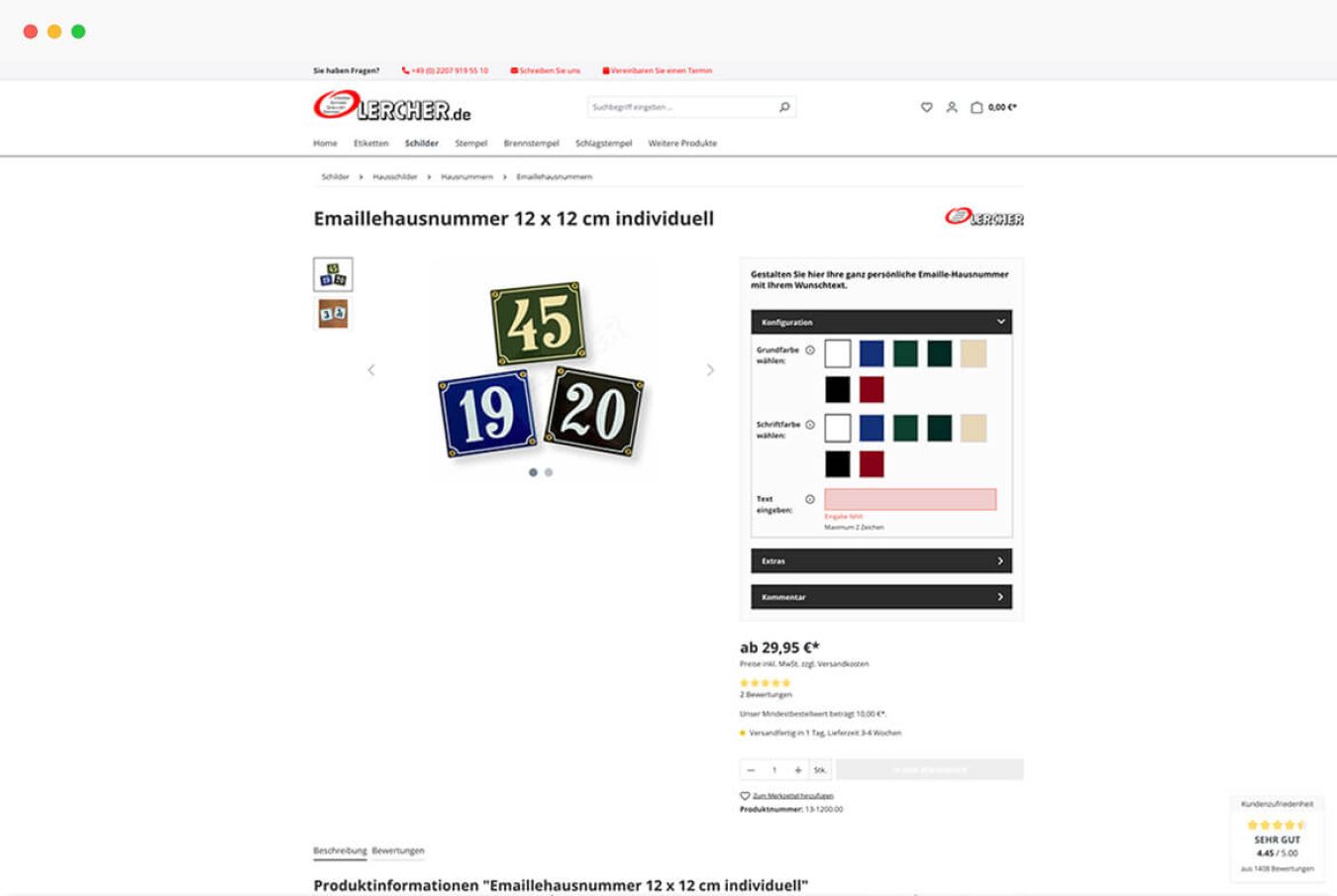 Während der Migration lag ein Schwerpunkt darauf, die Personalisierung der Stempel, Schilder und Gravuren weiterhin bequem zu ermöglichen. Dazu haben wir einen neuen Produkt-Konfigurator eingerichtet und für das Sortiment von Lercher optimiert. Als zusätzlichen Service haben wir beim Relaunch das Einpflegen der Produkte übernommen.
