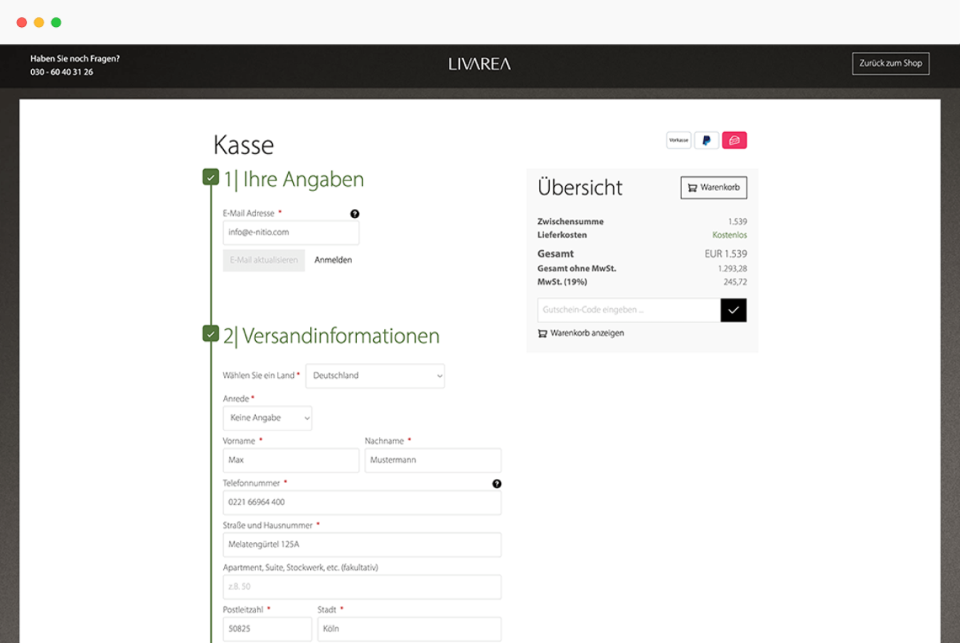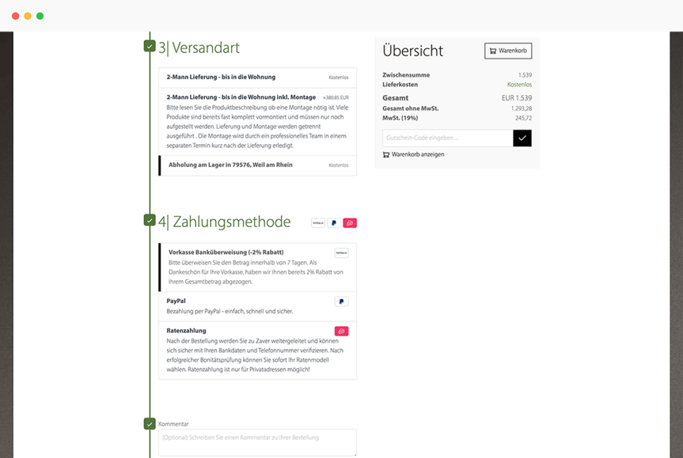Die exklusiven Möbelstücke werden mit Hilfe eines Konfigurators auf die Wünsche der Kunden abgestimmt. Um dies zu ermöglichen, haben wir unsere Shopware 6 Erweiterungen an die Anforderungen von Livarea individuell angepasst. Unsere Keine Variantenvorauswahl Erweiterung unterdrückt die automatischen Varianten auf den Produkt- und Kategorieseiten und rückt den Stammartikel in den Fokus. Ergänzt wird sie durch den Schritt-für-Schritt Konfigurator. Basierend auf den einzelnen Eigenschaften, die der Kunde wählt, kann er ganz bequem sein Wunschprodukt konfigurieren.