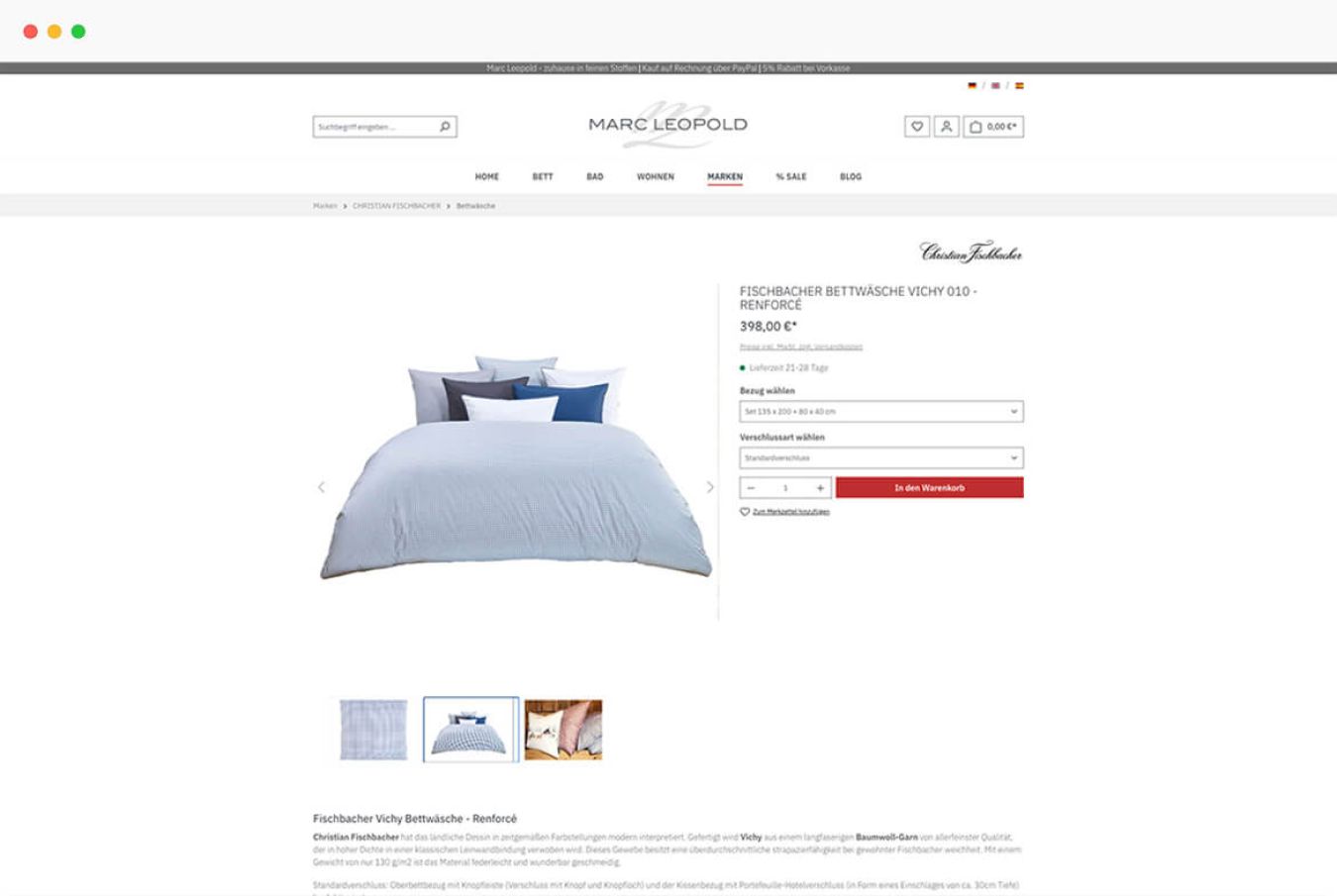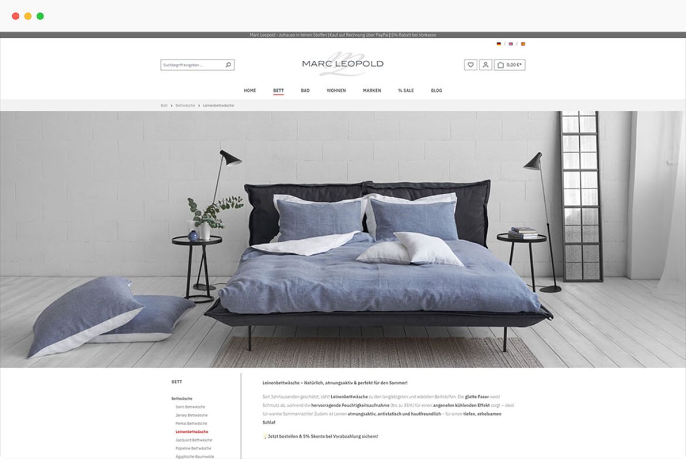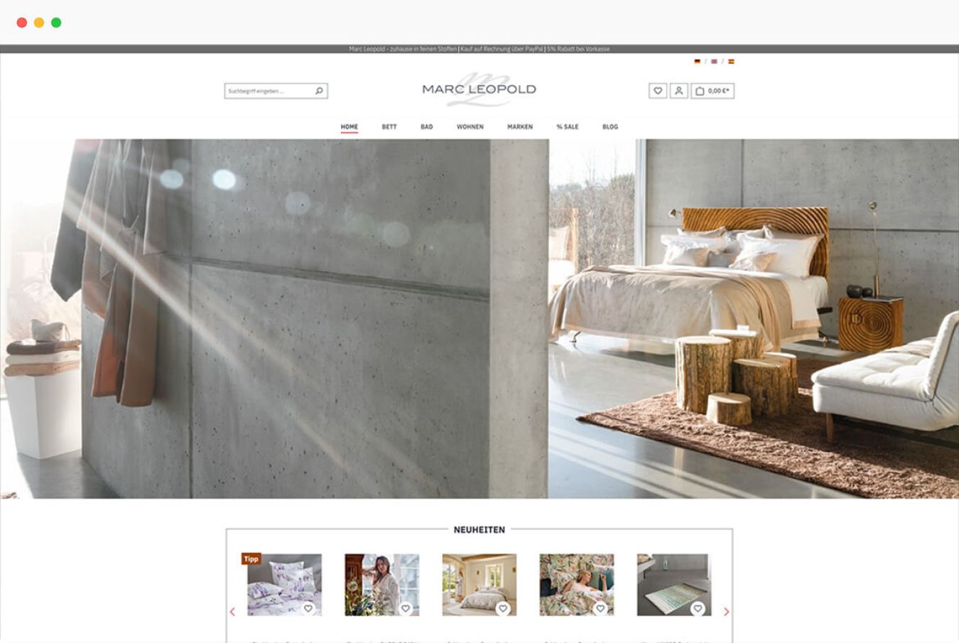 Wer luxuriöse Textilien liebt, wird im Onlineshop von Marc Leopold fündig. Das Sortiment umfasst hochwertige Bettwäsche, Decken, Bade- und Hausmäntel sowie Textilien für das Badezimmer. Dabei treffen traditionsreiche Marken auf junge, exquisite Manufakturen.