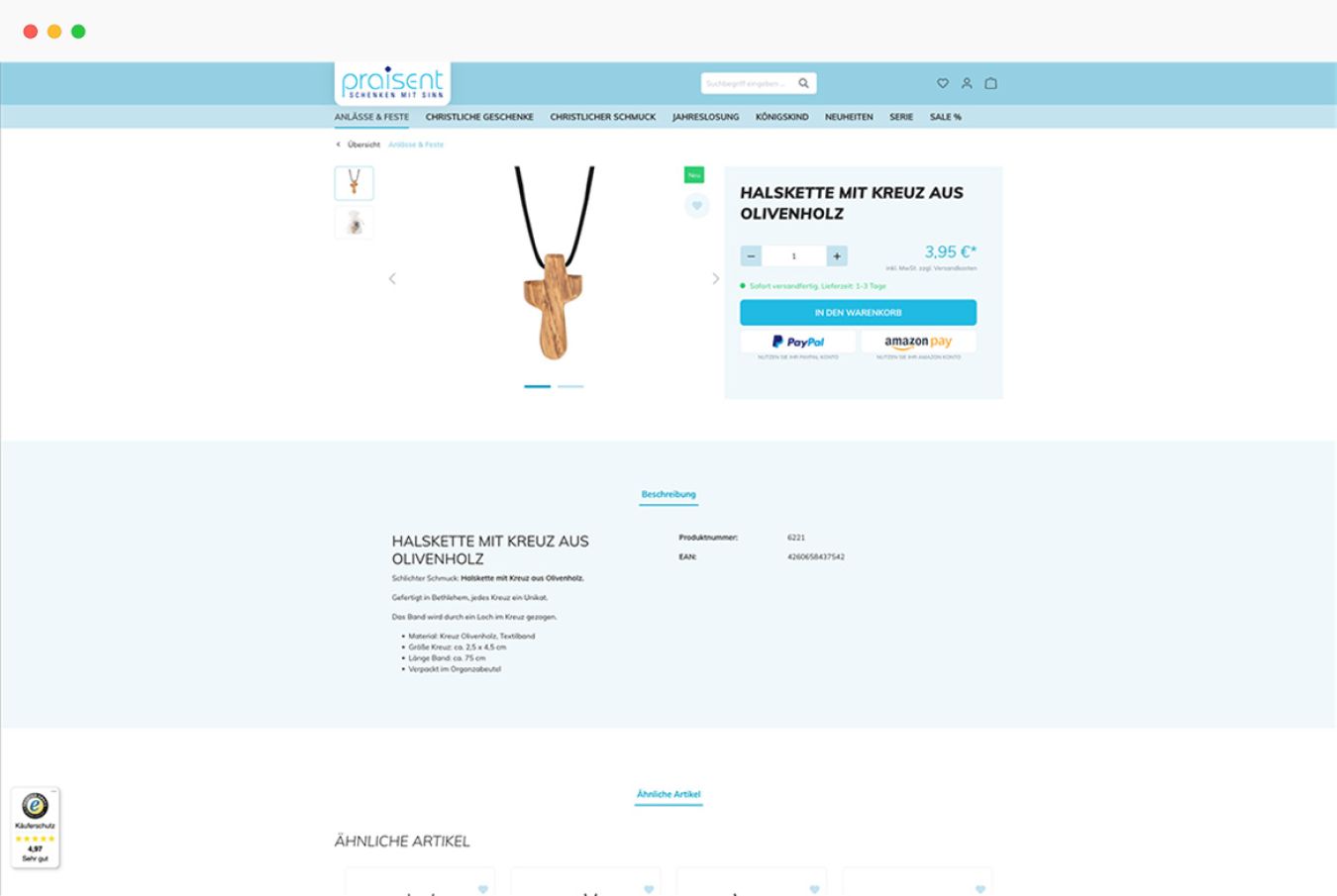 Bestehende kundenspezifische Anpassungen im Shopware 5 Shop haben wir bei der neuen Onlinepräsenz übernommen. Nach wie vor können SEO-Texte oberhalb der Produkte platziert werden. Die bewährte Cross-Selling-Anpassung blieb ebenfalls bestehen. Der Cross-Selling-Artikel wird unmittelbar neben dem ausgewählten Artikel angezeigt und nicht, wie üblich, darunter. Dadurch behält der Kunde die Orientierung auf der Seite, ohne scrollen zu müssen.