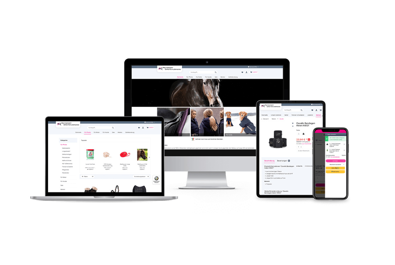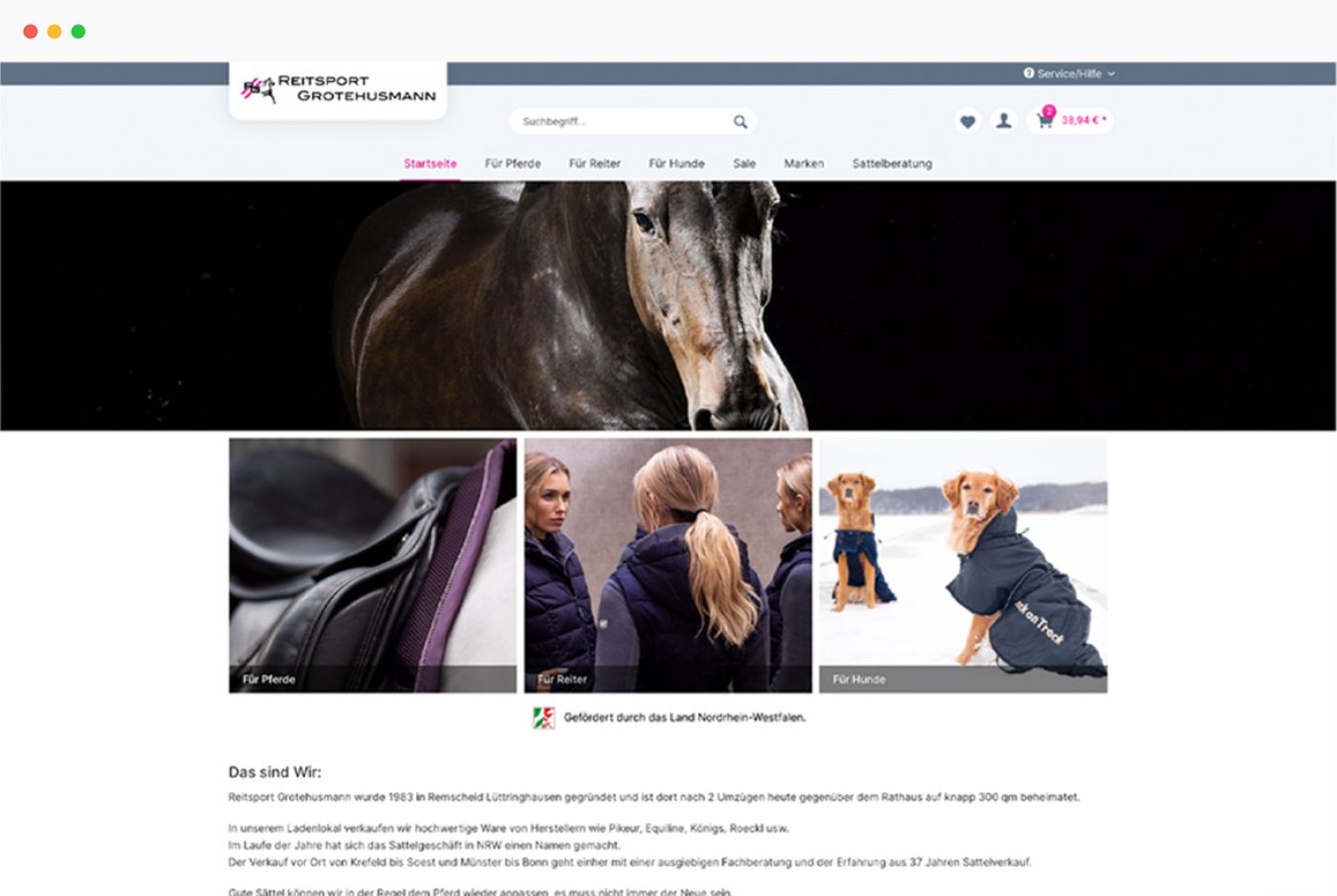 Mit dem neuen Shop, der das breit gefächerte Angebot für Pferde, Reiter und Hunde zeitgemäß präsentiert, sitzt Reitsport Grotehusmann nun auch online fest im Sattel.