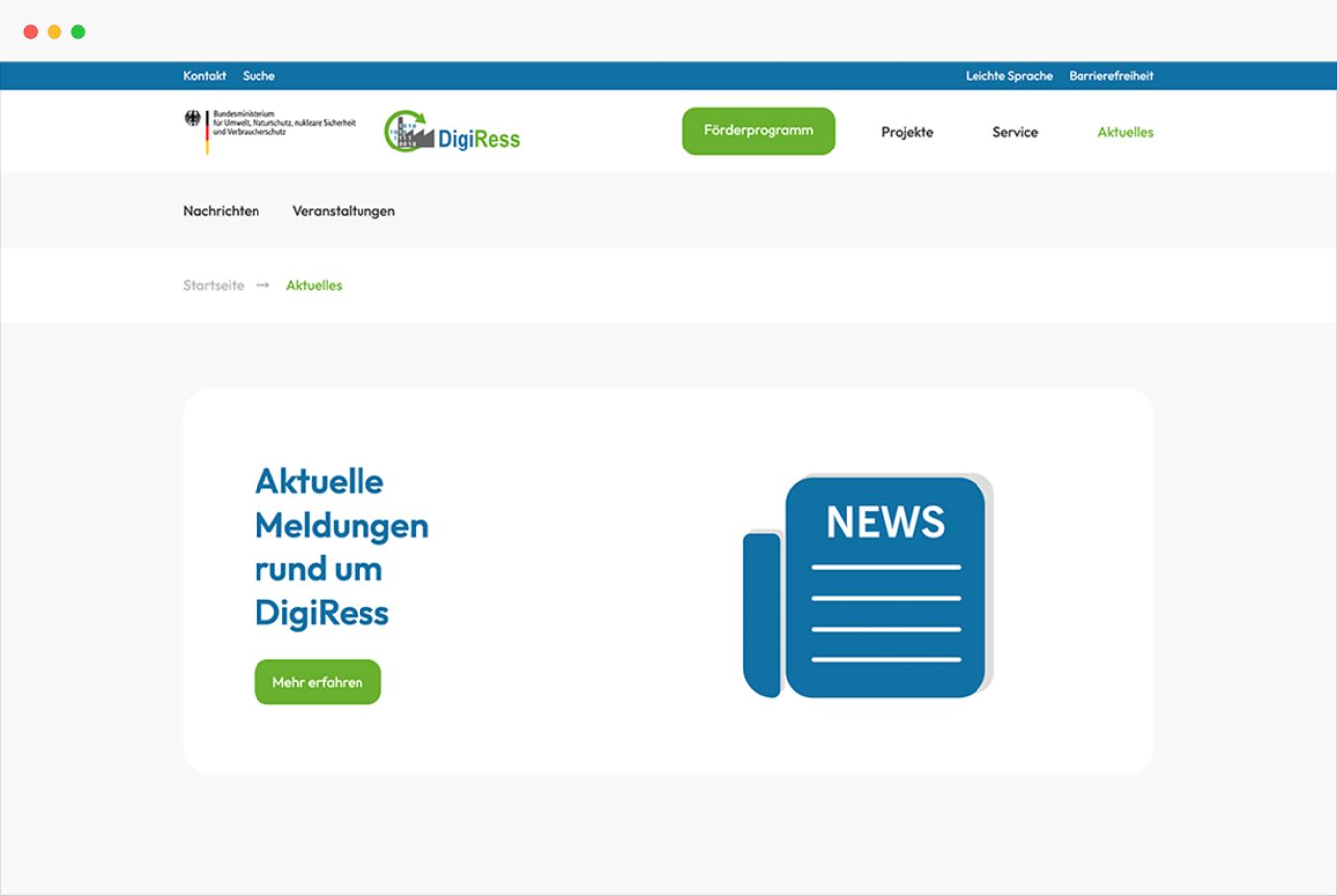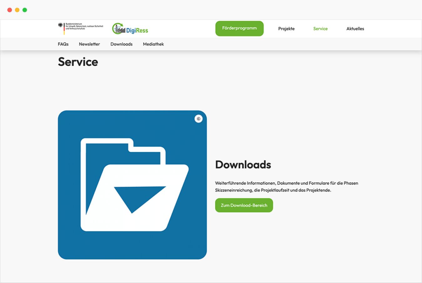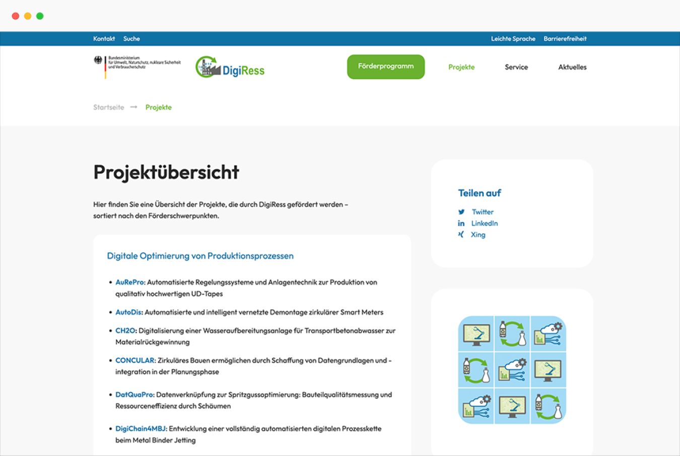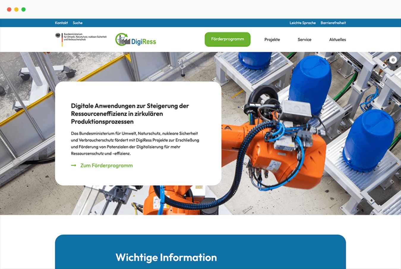 DigiRess ist ein Programm des Bundesministeriums für Umwelt, Naturschutz, nukleare Sicherheit und Verbraucherschutz. Die Initiative unterstützt Projekte zur Erschließung und Förderung von Potenzialen der Digitalisierung für mehr Ressourcenschutz und -effizienz.