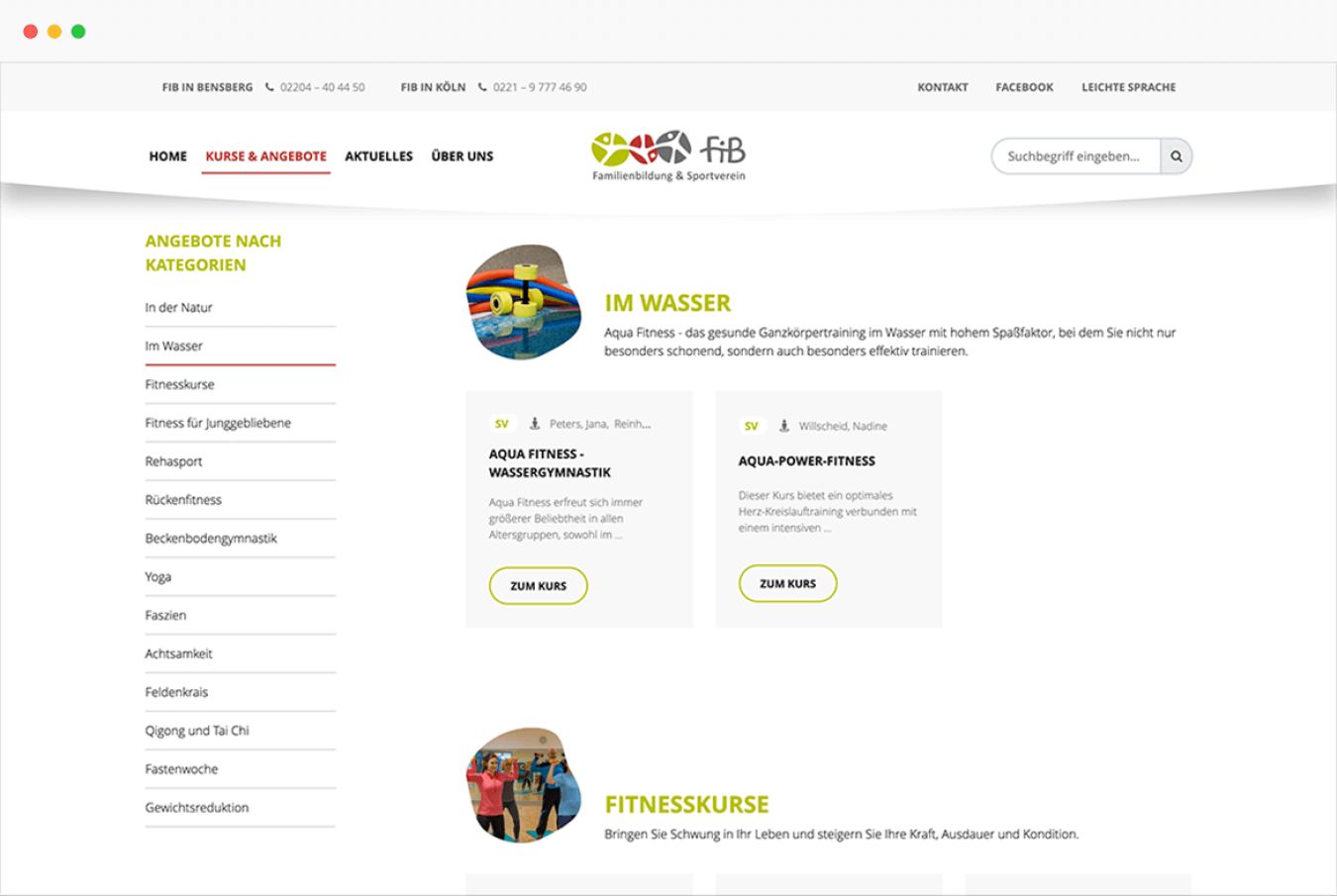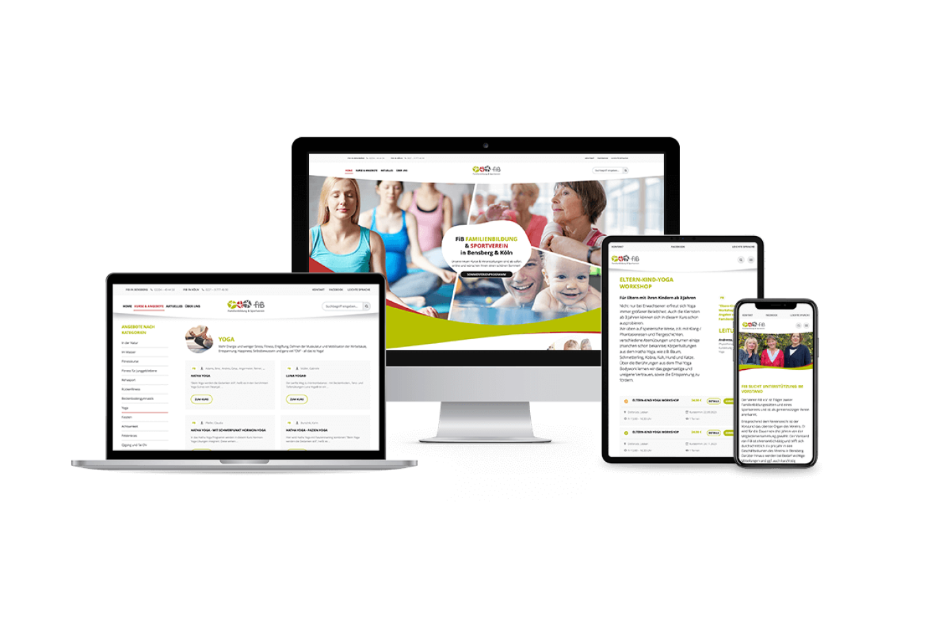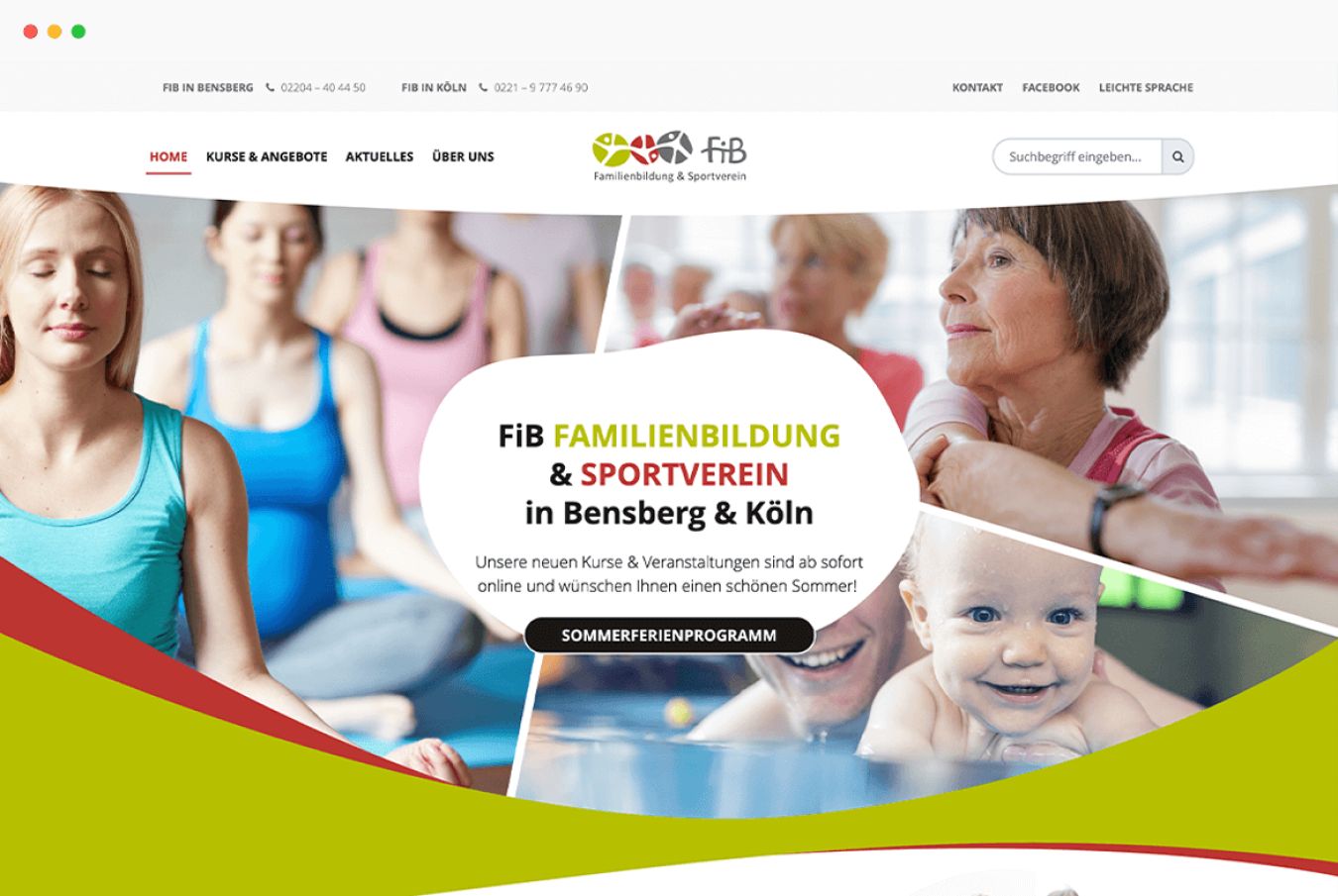 FiB e.V. ist eine Mischung aus Familienbildungsstätte und Sportverein mit Niederlassungen in Köln und Bensberg. Der Verein bietet ein vielseitiges Kursangebot rund um die Themen Fitness, Entspannung, Familie & Co an.