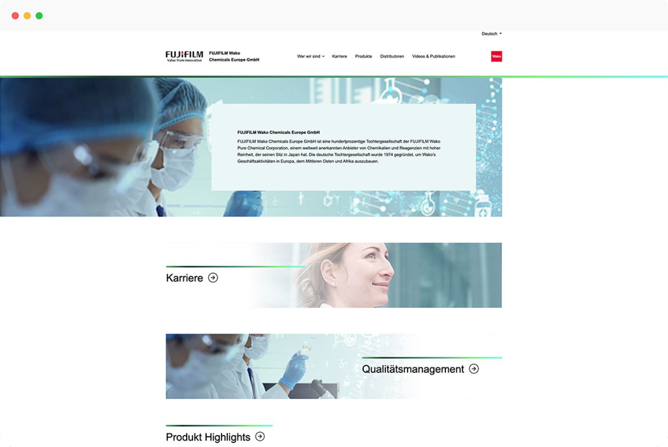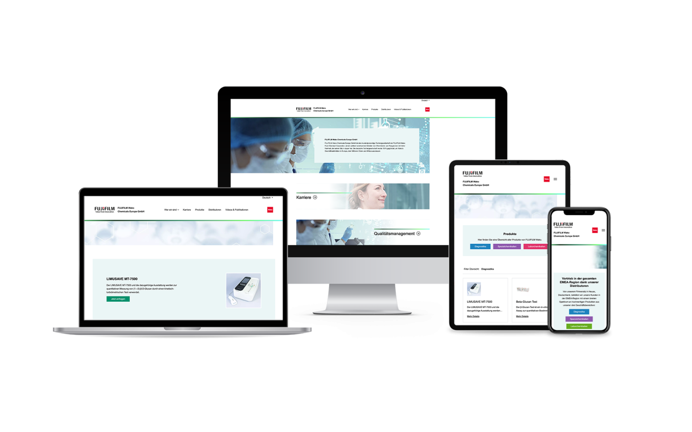 Der neue Internetauftritt wurde im Content Management System webEdition in Deutsch und Englisch realisiert. Die Redakteure und Redakteurinnen des Unternehmens können Inhalte der Website selbstständig aktualisieren. Design und Aufbau orientieren sich am CI von FUJIFILM.