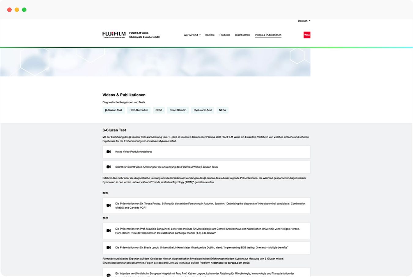 Seite für Videos und Publikationen
