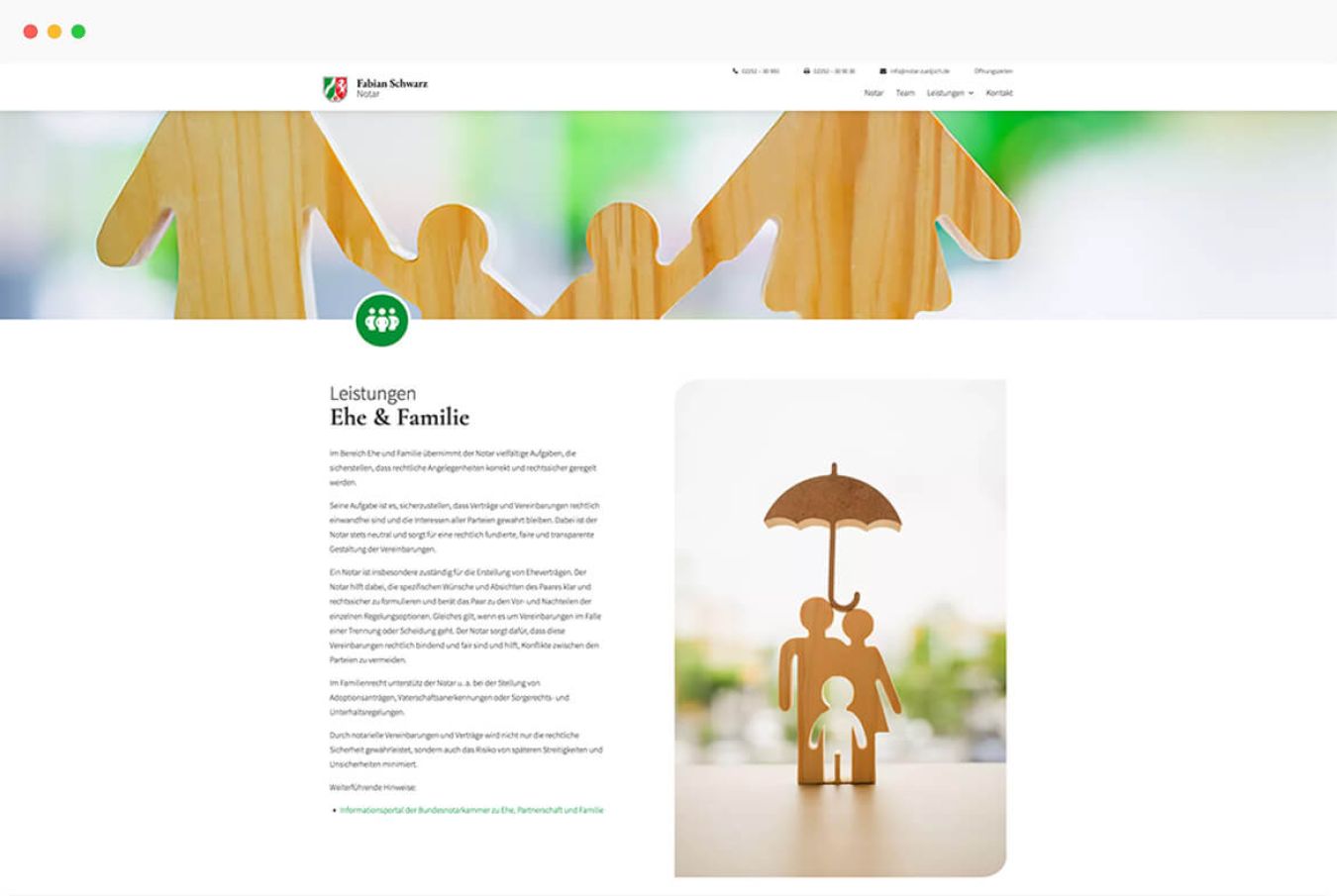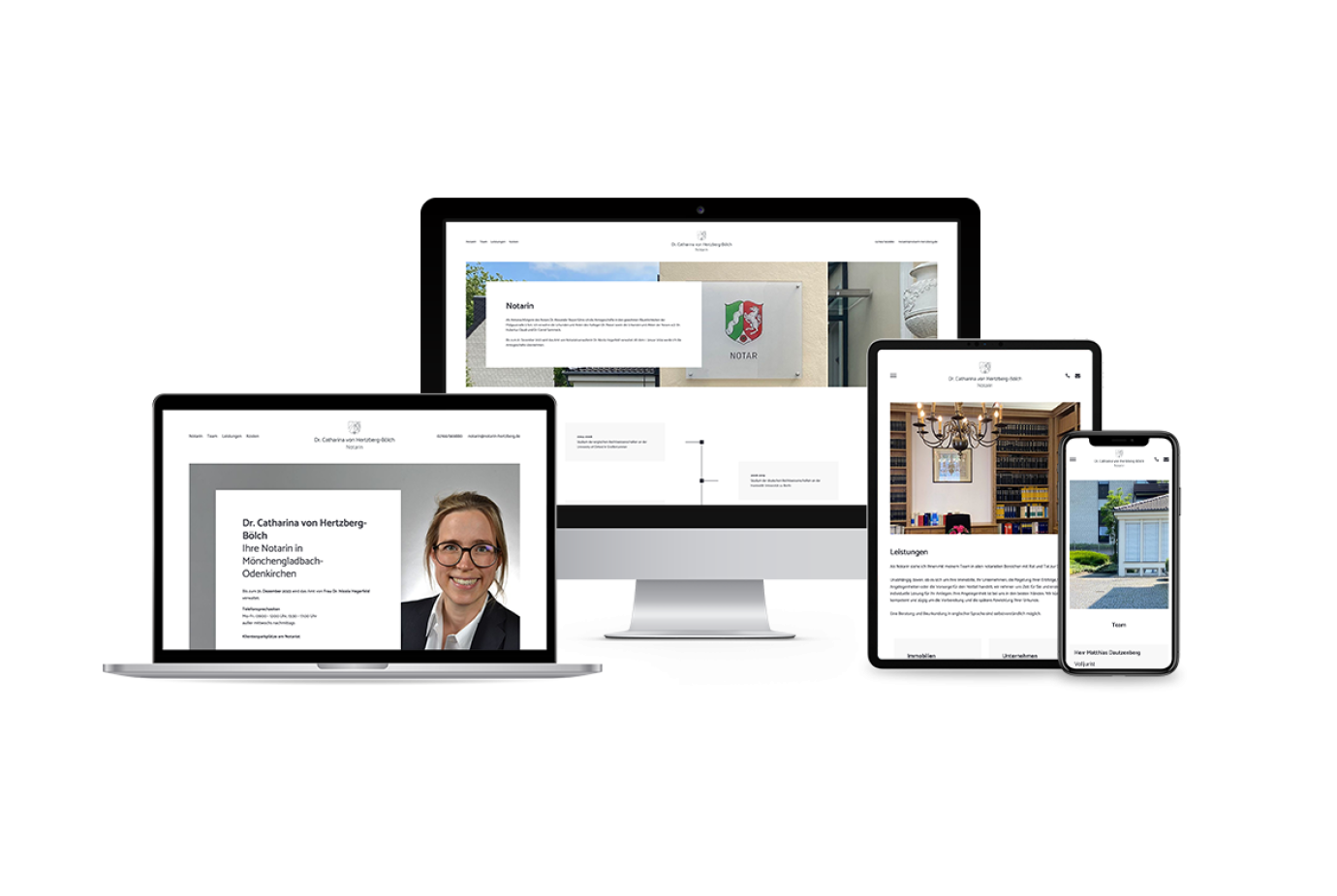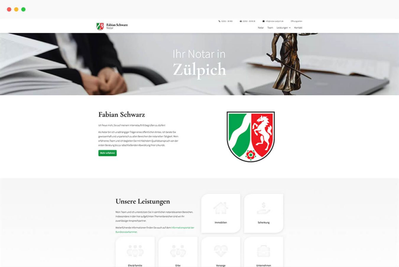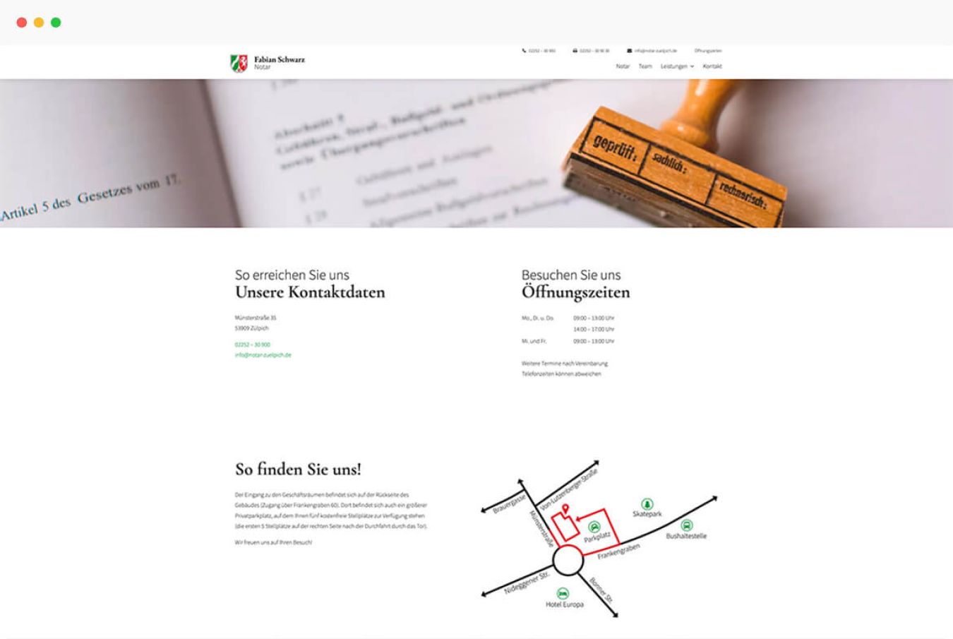 Wir haben für Notar Schwarz das Logo und die Visitenkarte als wesentliche Bestandteile der Geschäftsausstattung entwickelt und ihn bei der Erstellung eines Google Unternehmensprofils unterstützt. Darüber hinaus haben wir den Internetauftritt konzipiert und umgesetzt. Die Website stellt in modernem Design und übersichtlicher Struktur die Leistungen des Notariats vor.