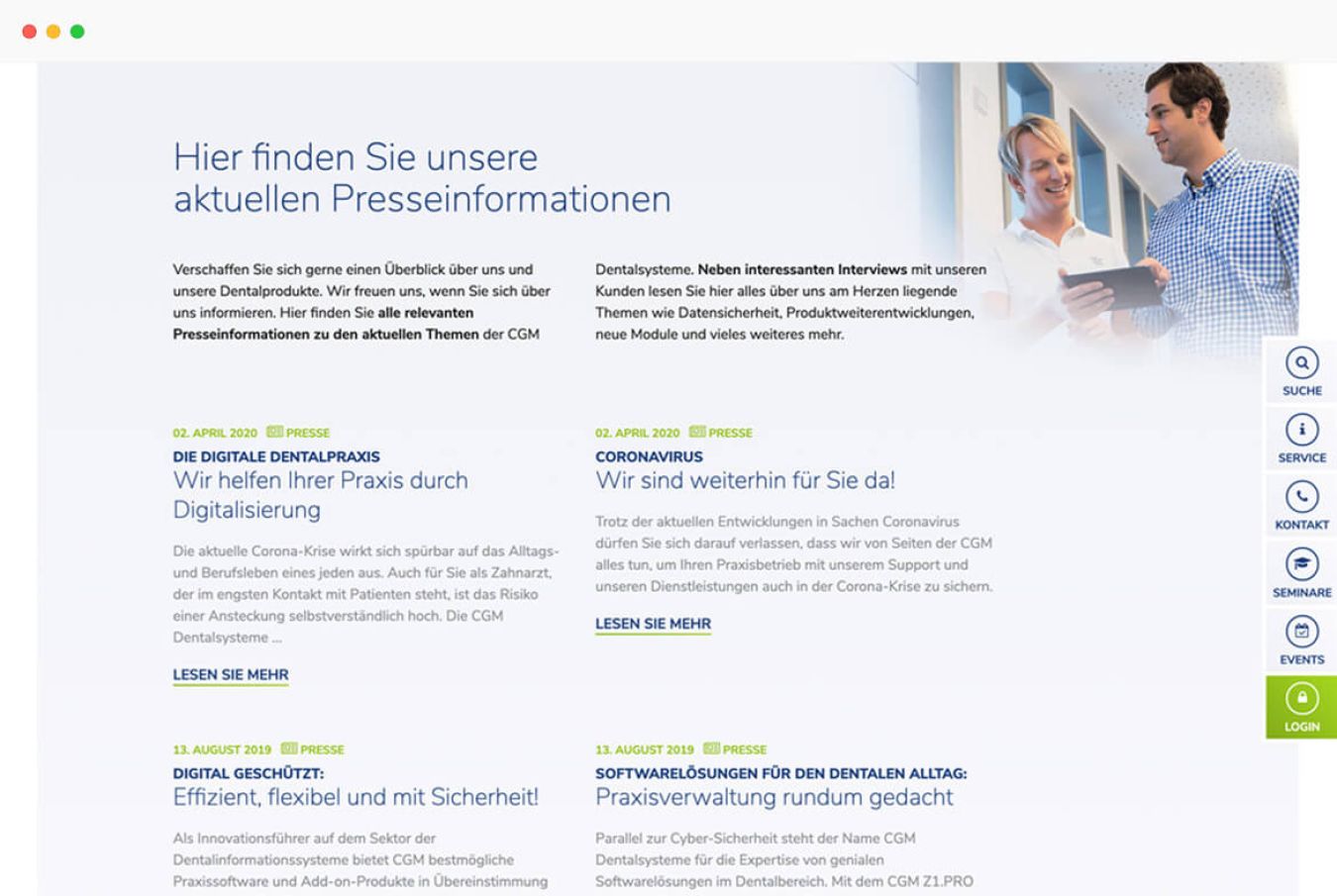 Die CGM Dentalsysteme GmbH entwickelt innovativen Softwarelösungen für Zahnärzte, Zahnkliniken, Kieferorthopäden sowie Mund-, Kiefer & Gesichtschirurgen. Die Software kann nach dem Baukastenprinzip individuell auf den Praxisbedarf zugeschnitten werden.