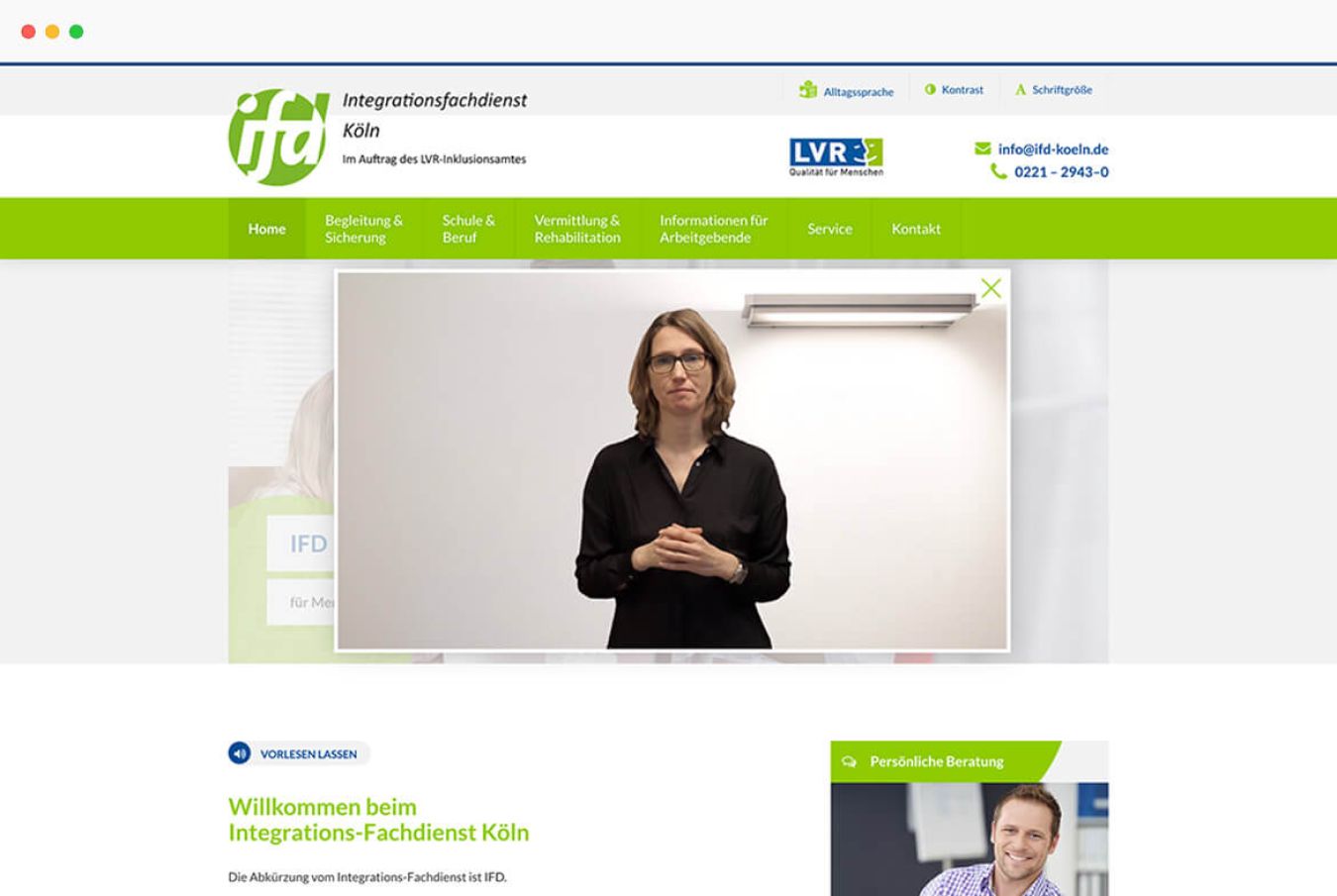 Wir haben für den IFD einen barrierefreien Internetauftritt entwickelt, der im CMS webEdition gepflegt wird. Die Website bietet neben der responsiven Gestaltung u.a. eine dynamische Sprachausgabe, Videos in Gebärdensprache, die Umschaltung von Kontrasten und Schriftgrößen sowie eine Variante in Leichter Sprache.