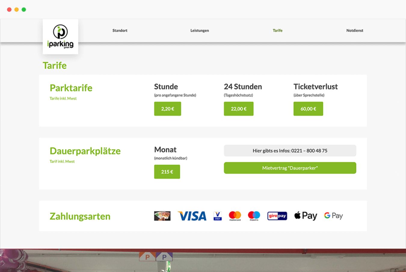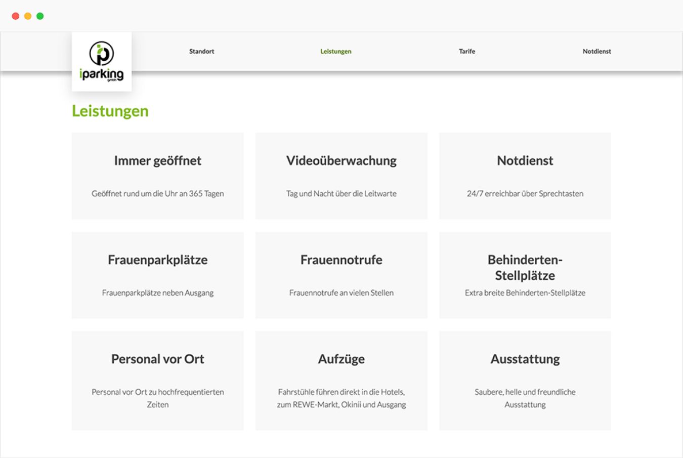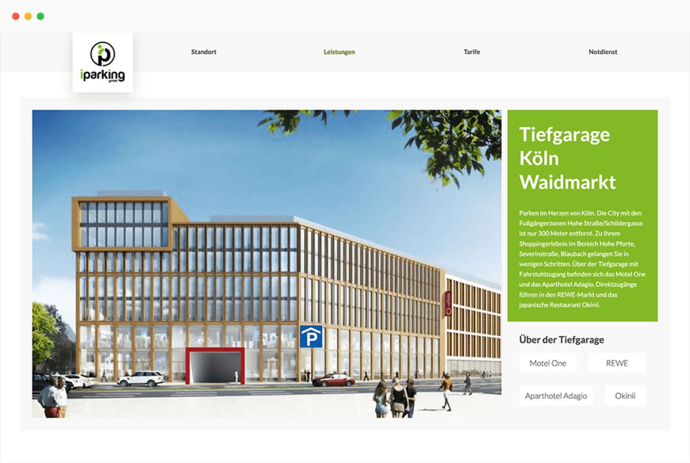 Ziel des Relaunchs war die optimale Auffindbarkeit der Tiefgarage in der Google Suche. Dafür haben wir einen Onepager konzipiert und redaktionelle Inhalte verfasst, die ein gutes Ranking ermöglichen.