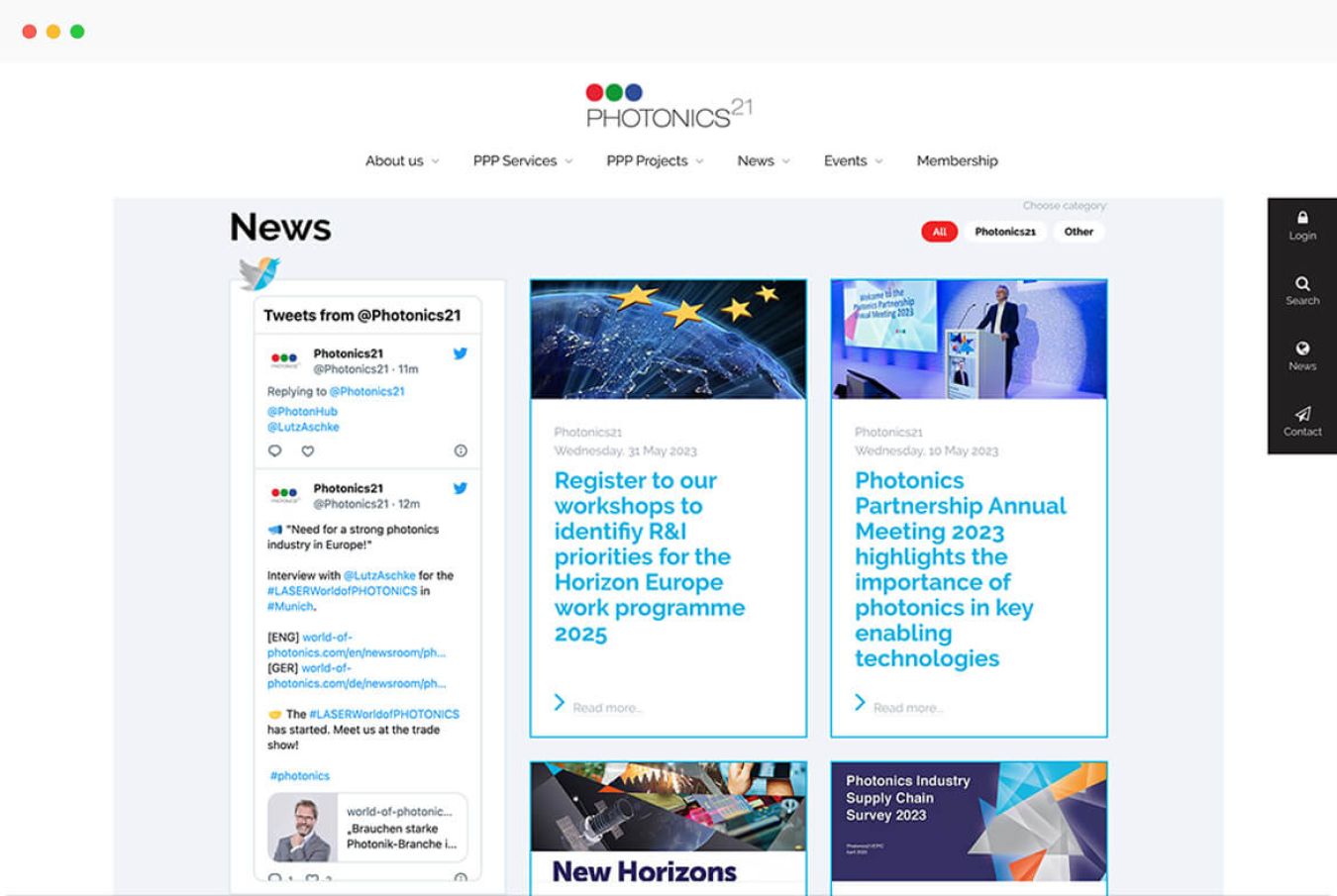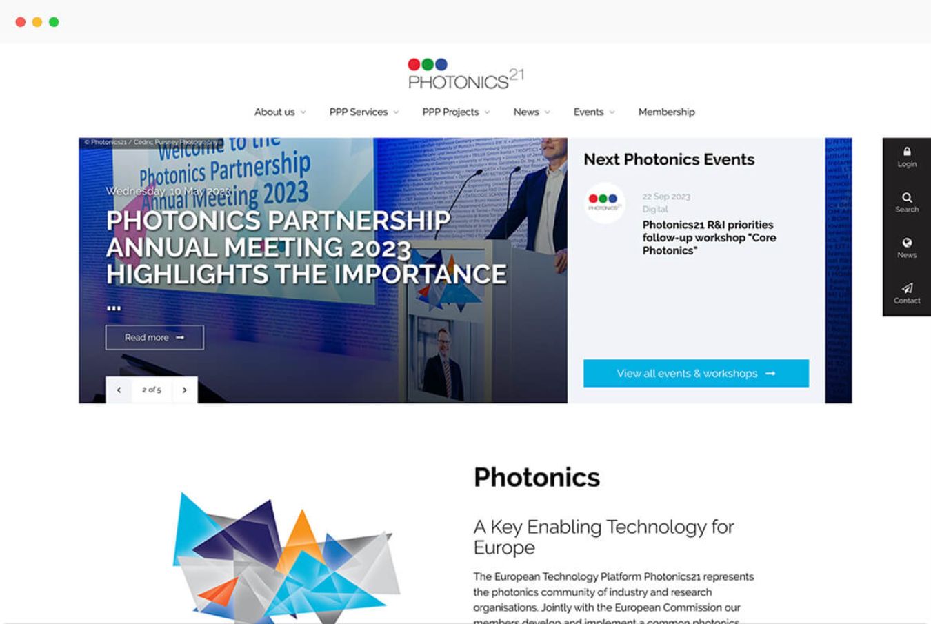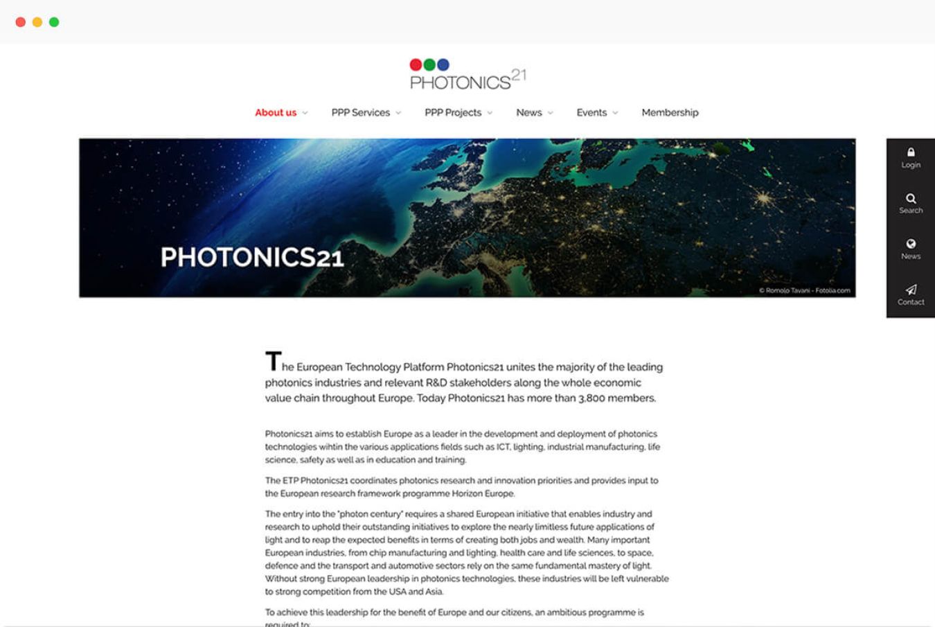 Die European Technology Platform (ETP) für Photonik „Photonics21" ist die zentrale Online-Plattform für mehr als 3000 internationale Akteure aus dem Bereich Photonik.