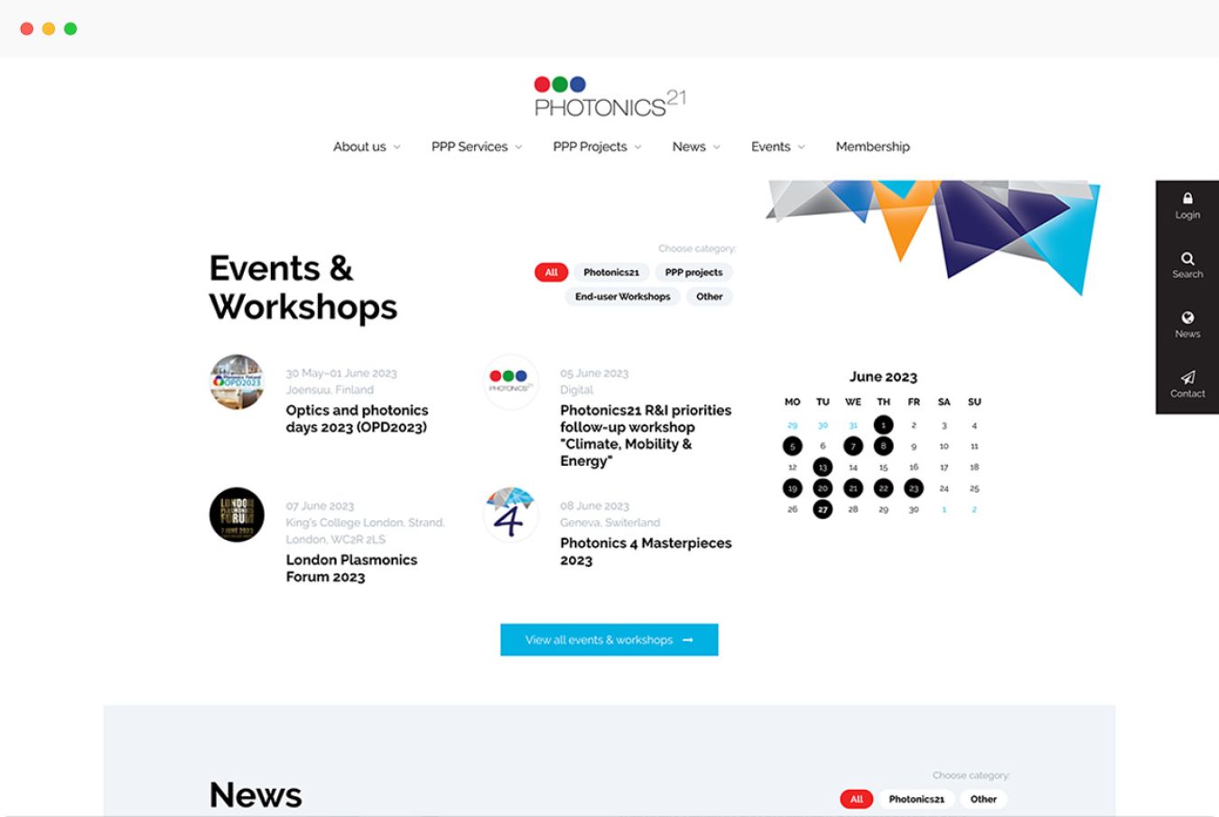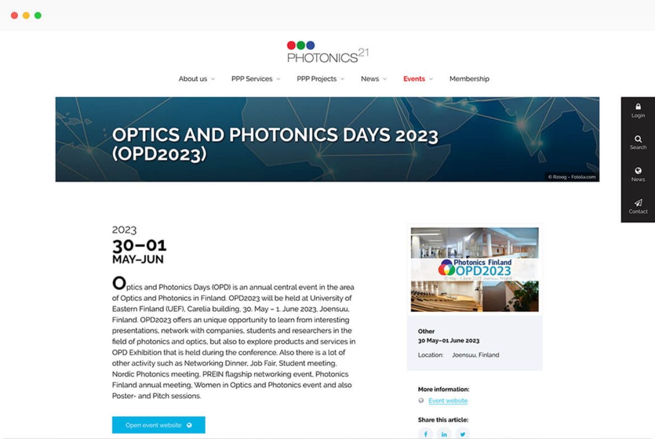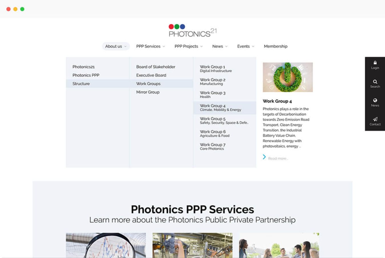 Die European Technology Platform (ETP) für Photonik „Photonics21" ist die zentrale Online-Plattform für mehr als 3000 internationale Akteure aus dem Bereich Photonik.