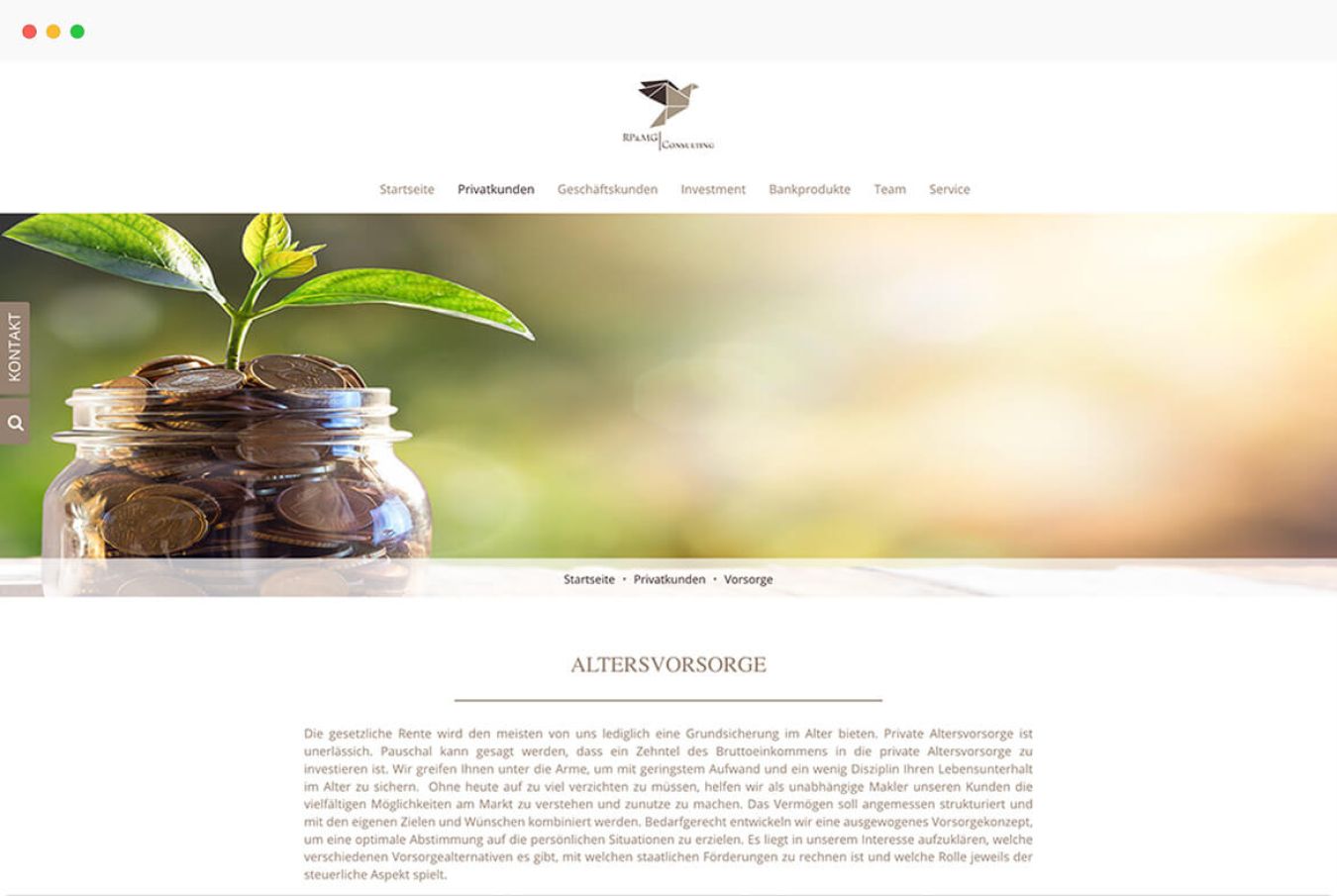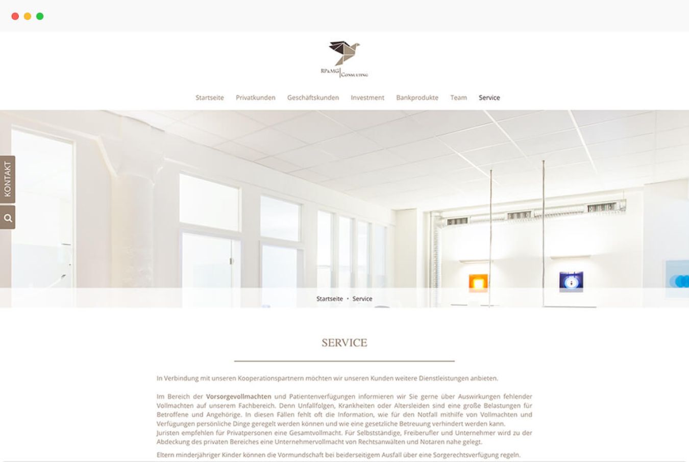 Wir entwickelten zum bestehenden Corporate Design von RP&MG ein responsives Web-Design und erstellten im CMS webEdition die benötigten HTML5-Templates. In einem Workshop schulten wir die Mitarbeiter von RP&MG in den Grundlage der OnPage SEO und der Bedienung des CMS. Anschließend wurde der Internetauftritt selbstständig durch RP&MG aufgebaut, was dank webEdition einfach und zügig möglich war.